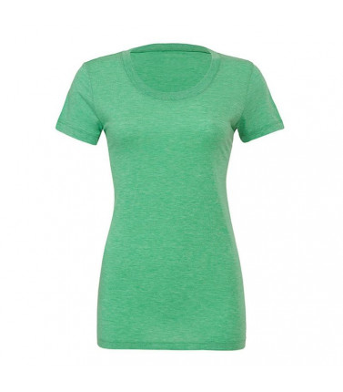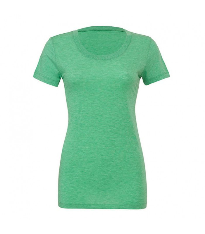 t-shirt girocollo manica corta, 115 gr. in tessuto 'triblend': composto da 50% poliestere, 25% cotone pettinato e ring-spun, 25% rayon. cuciture laterali, vestibilità moderna femminile dalla linea più lunga.