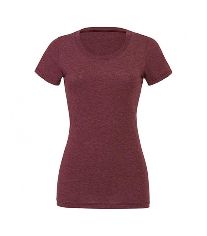 t-shirt girocollo manica corta, 115 gr. in tessuto 'triblend': composto da 50% poliestere, 25% cotone pettinato e ring-spun, 25% rayon. cuciture laterali, vestibilità moderna femminile dalla linea più lunga.
