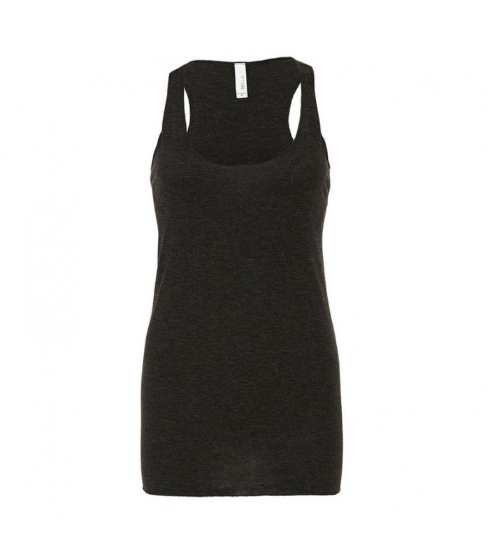 canotta con ampio scollo, 115 gr. in tessuto 'triblend', composto da: 50% poliestere, 25% cotone pettinato e ring-spun, 25% rayon. cuciture con taglio a vivo, vestibilità moderna femminile dalla linea più lunga.