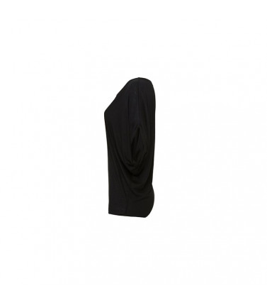 t-shirt con maniche corte a pipistrello e ampio scollo. cuciture laterali, vestibilità moderna. fascia in vita leggermente più stretta. tessuti: