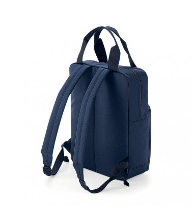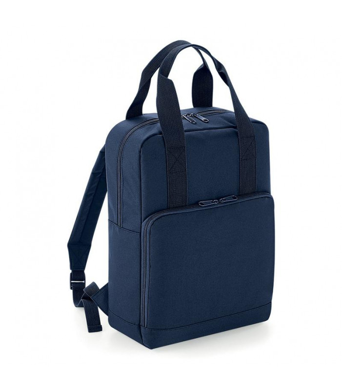 100% 300d poliestere. zaino con doppio manico, tasca principale con chiusura a zip, tasca frontale, manici per tracolla, tasca interna con cerniera, pannello posteriore imbottito. dimensioni: 28x38x12 cm, capacitã : 14 litri, area stampabile: 24x17 cm.