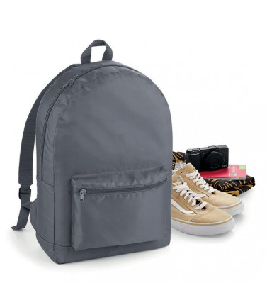 100% poliestere 210d. zaino idrorepellente con bretelle regolabili, tasca interna, compartimento principale e tasca frontale con cerniera. dimensioni: 31 x 45 x 16 cm, capacita': 20 litri, area di stampa: 21 x 15 cm.