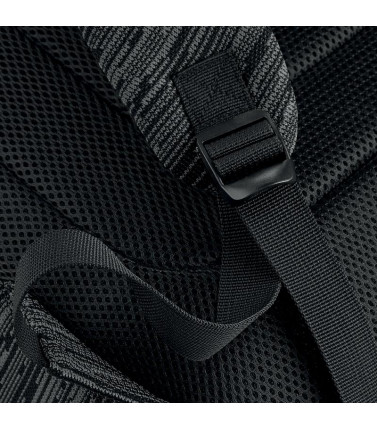 100% poliestere. zaino con tasca esterna nascosta con cerniera, puo' contenere laptop fino a 15.6', tasca interna, pannello posteriore e bretelle imbottite. dimensioni: 31 x 50 x 16 cm, capacita' 20 litri, area di stampa: 34 x 16 cm.