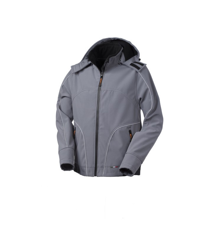 Chiusura con cerniera centrale antipioggia, 2 tasche inferiori chiuse con cerniera antipioggia, 1 taschino interno al petto destro chiuso con cerniera, polsi interni in maglia elastica, coulisse di chiusura al fondo, fondo posteriore arrotondato con inserti di colore a contrasto, cappuccio con coulisse e velcro di chiusura applicato al giubbotto tramite cerniera, fori di aerazione sotto le ascelle e su schiena, profili rifrangenti anteriori, posteriori e lungo le maniche. tessuto 94% poliestere 6% spandex