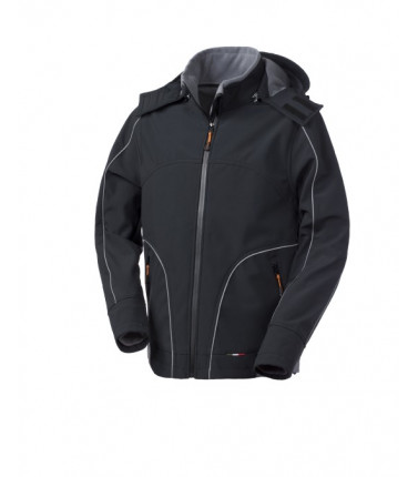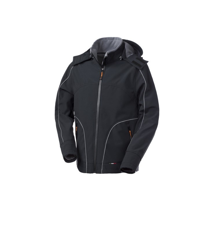 Chiusura con cerniera centrale antipioggia, 2 tasche inferiori chiuse con cerniera antipioggia, 1 taschino interno al petto destro chiuso con cerniera, polsi interni in maglia elastica, coulisse di chiusura al fondo, fondo posteriore arrotondato con inserti di colore a contrasto, cappuccio con coulisse e velcro di chiusura applicato al giubbotto tramite cerniera, fori di aerazione sotto le ascelle e su schiena, profili rifrangenti anteriori, posteriori e lungo le maniche. tessuto 94% poliestere 6% spandex