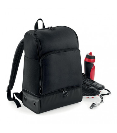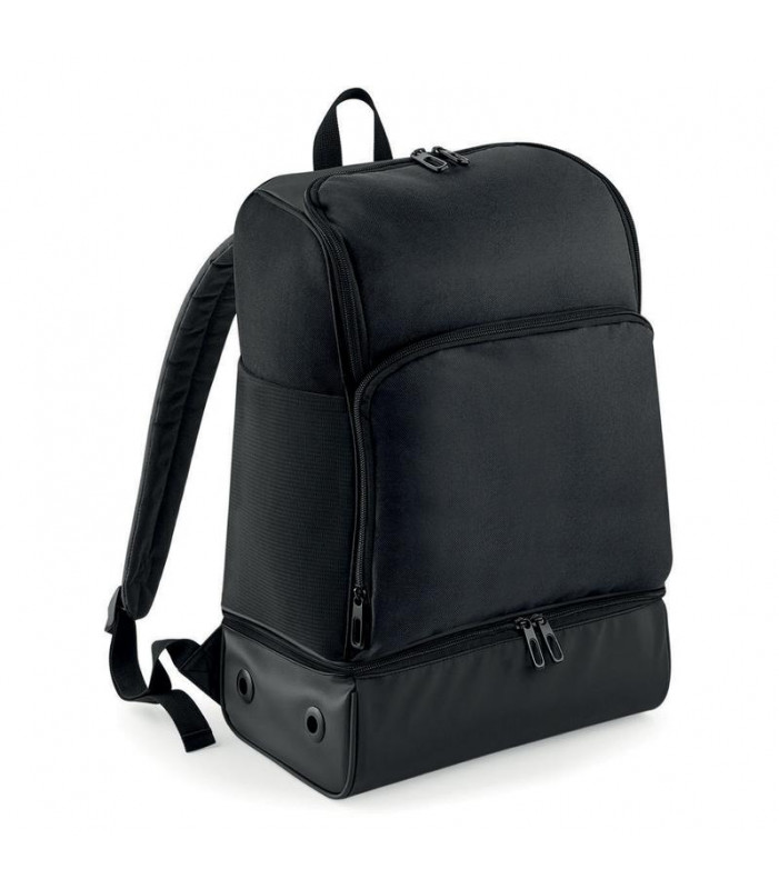 100% poliestere 600d. zaino dotato di tasca frontale con cerniera, due compartimenti di cui uno traspirante alla base, tasche interne, bretelle imbottite regolabili. dimensioni: 32 x 45 x 18 cm, capacita': 23 litri, area di stampa: 25 x 14 cm.
