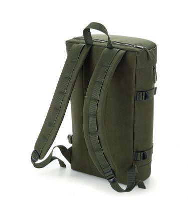 100% 600d poliestere. zaino in stile militare con scomparto principale e tasca frontale con zip, patch rip-strip per decorazione, manico per aggancio, pannello posteriore imbottito e spallacci regolabili. dimensioni: 27x47x17 cm, capacitã : 21 litri, area di stampa massima: 9x6 cm.