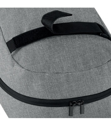100% poliestere 600d. zaino con pannello posteriore imbottito, puo' contenere laptop fino a 17', tasca interna, fasce frontali, bretelle imbottite e regolabili. dimensioni: 31 x 50 x 16 cm, capacita': 20 litri, area di stampa: 19 x 15 cm.
