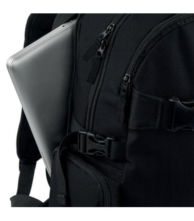 100% poliestere 600d. zaino con compartimento per laptop fino a 17', fasce frontali, compartimento interno, tasca frontale e tasche laterali con cerniera. dimensioni: 36 x 46 x 16 cm, capacita': 23 litri, area di stampa: 23 x 14 cm.