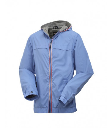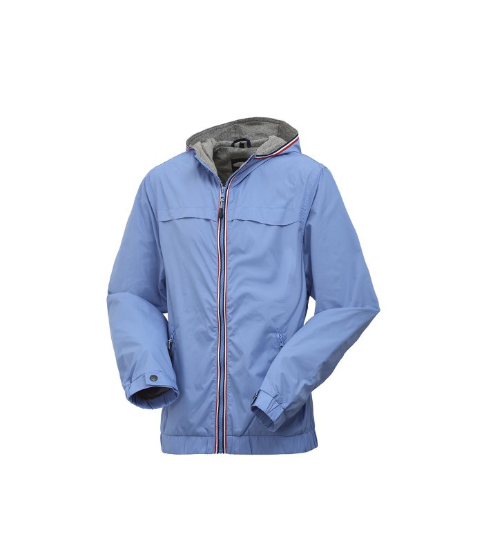 Chiusura con cerniera centrale, 2 tasche inferiori chiuse con cerniera, elastico in vita, polsi con elastico regolabili con alamaro e bottone automatico, cappuccio, foro di aerazione sotto le ascelle. esterno: 100% nylon. interno: fodera in jersey 95% cotone, 5% elastan. maniche foderate in 100% poliestere.