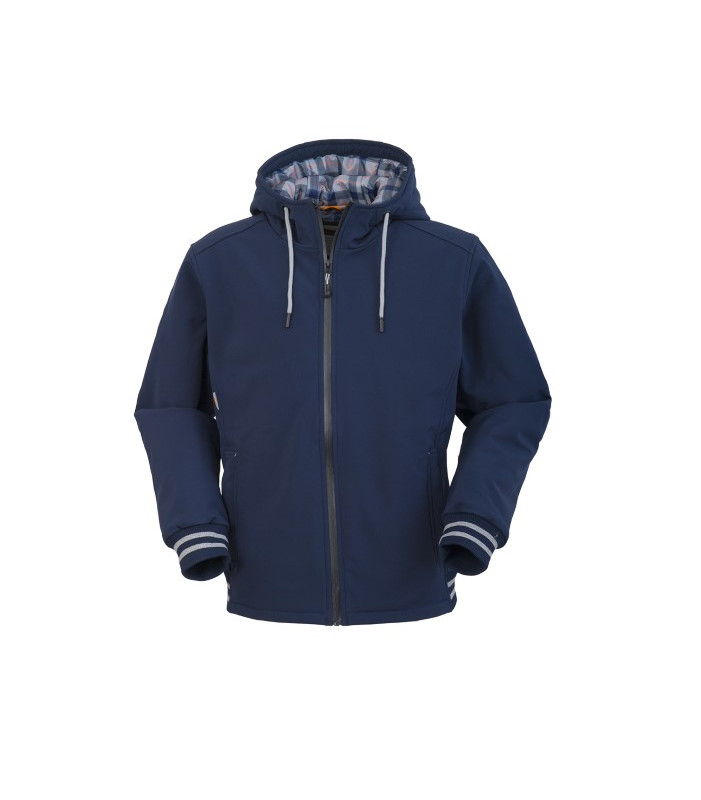 Chiusura con cerniera centrale antipioggia, 2 tasche inferiori a filetto chiuse con cerniera, 1 taschino interno a destra sotto cerniera, fori di aerazione sotto le ascelle, polsi e fascia in vita in maglia elastica, cappuccio fisso con coulisse, inserto rifrangente sotto il cappuccio.