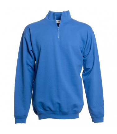 80% cotone, 20% poliestere. felpa mezza zip, manica dritta, felpata internamente. produzione interamente italiana. cerniera in plastica, tiralampo in metallo. cuciture laterali