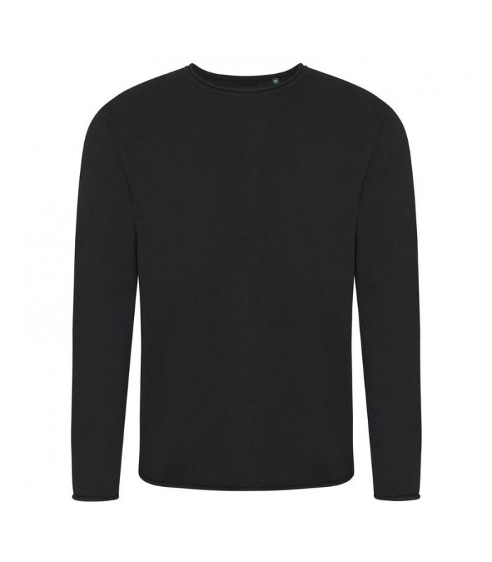 70% cotone rigenerato, 30% poliestere riciclato. maglione girocollo, maniche a giro, polsini e collo a costine, maglia in punto riso. etichetta strappabile.