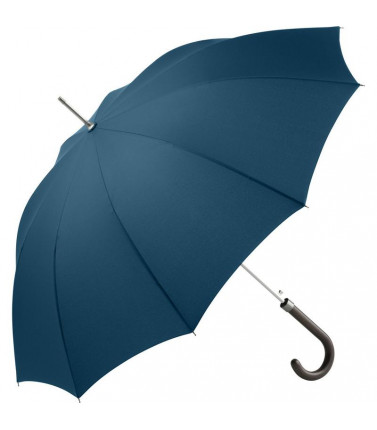 apertura automatica, stecche cromate con rinforzo in fibra di vetro, bastone in acciaio cromato, manico a uncino tondeggiante in legno fiammato con occhiello, design speciale dell'ombrello grazie a 10 pannelli. diametro: 105 cm, lunghezza 88 cm.