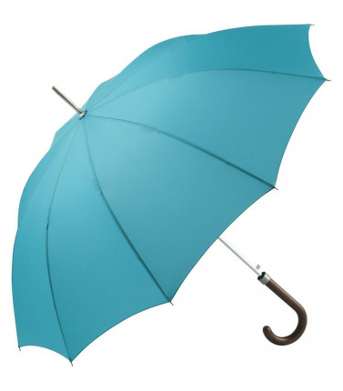 apertura automatica, stecche cromate con rinforzo in fibra di vetro, bastone in acciaio cromato, manico a uncino tondeggiante in legno fiammato con occhiello, design speciale dell'ombrello grazie a 10 pannelli. diametro: 105 cm, lunghezza 88 cm.