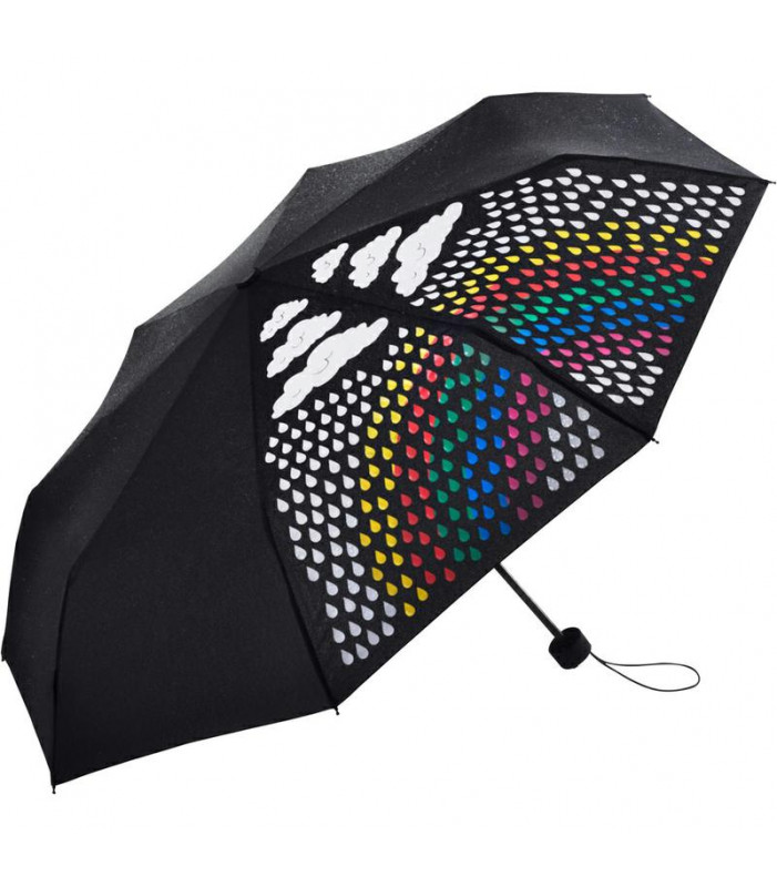 fodera con stampa speciale su due spicchi: nuvole da pioggia bianche in caso di sole, un coloratissimo arcobaleno in caso di pioggia. proprietà windproof per una maggiore flessibilità del telaio e una migliore resistenza contro il vento, maneggevolezza gr