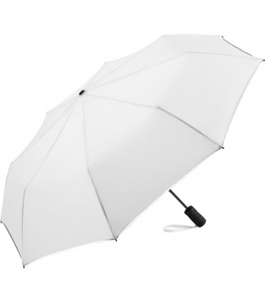 copertura: 100% poliestere, manico: plastica, asta: acciaio. ombrello mini con apertura automatica e bordino catarifrangente, antivento e flessibile, manico nero soft touch, copertura con bordino catarifrangente. diametro: 100 cm, lunghezza da chiuso: 31 cm, 8 pannelli.