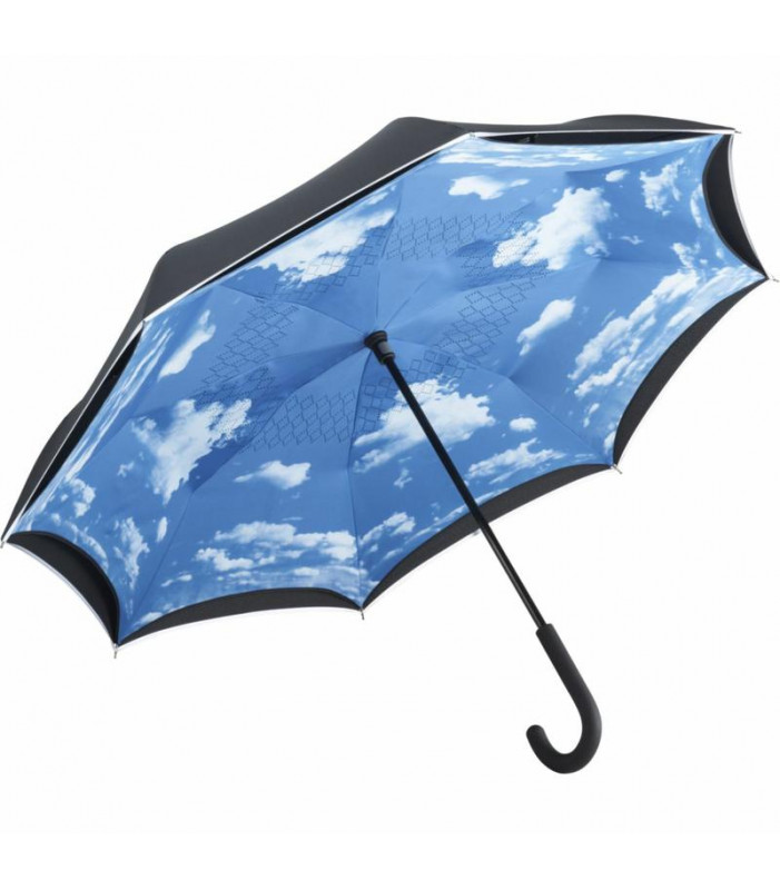 copertura: 100% poliestere, manico: plastica, asta: acciaio. ombrello con meccanismo di apertura inverso, bacchette in fibra di vetro flessibili, tessuto doppio traspirante, bordino: catarifrangente, manico nero soft-touch. diametro: 109 cm, lunghezza da chiuso: 78 cm, 8 pannelli.