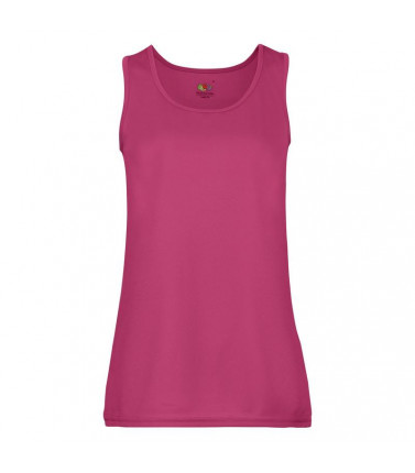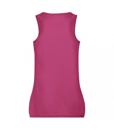 100% poliestere, spalline posteriori modello racer, scollo e giromanica bordati, cuciture laterali sagomate per un taglio piu' femminile. gr 140