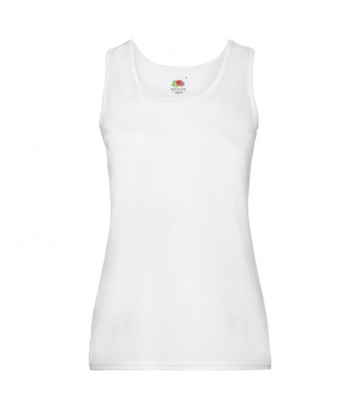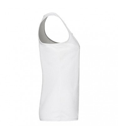 100% poliestere, spalline posteriori modello racer, scollo e giromanica bordati, cuciture laterali sagomate per un taglio piu' femminile. gr 140