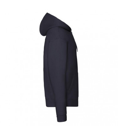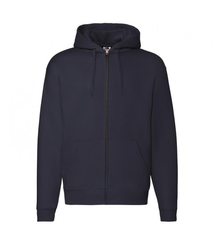 70% cotone, 30% poliestere, cappuccio doppiato con cordoncino in tinta, tascone anteriore a marsupio, cerniera nascosta per favorire la stampa, felpata internamente.