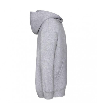 70% cotone, 30% poliestere, tascone anteriore a marsupio, cerniera nascosta, cappuccio doppiato senza cordino. felpata internamente.