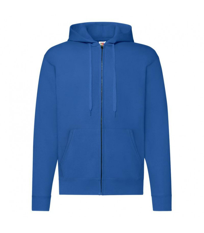 80% cotone, 20% poliestere, cappuccio doppiato con cordoncino in tinta, tascone anteriore a marsupio, cerniera nascosta per favorire la stampa, felpata internamente.