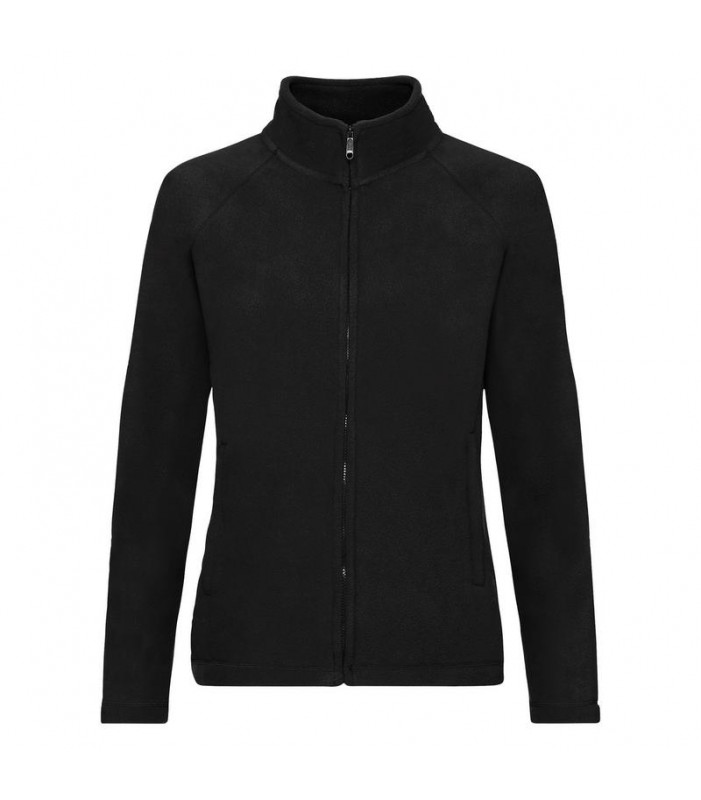 100% poliestere tessuto resistente al pilling, maniche raglan, vestibilità femminile, 2 tasche laterali con cerniera, zip intera tono su tono.