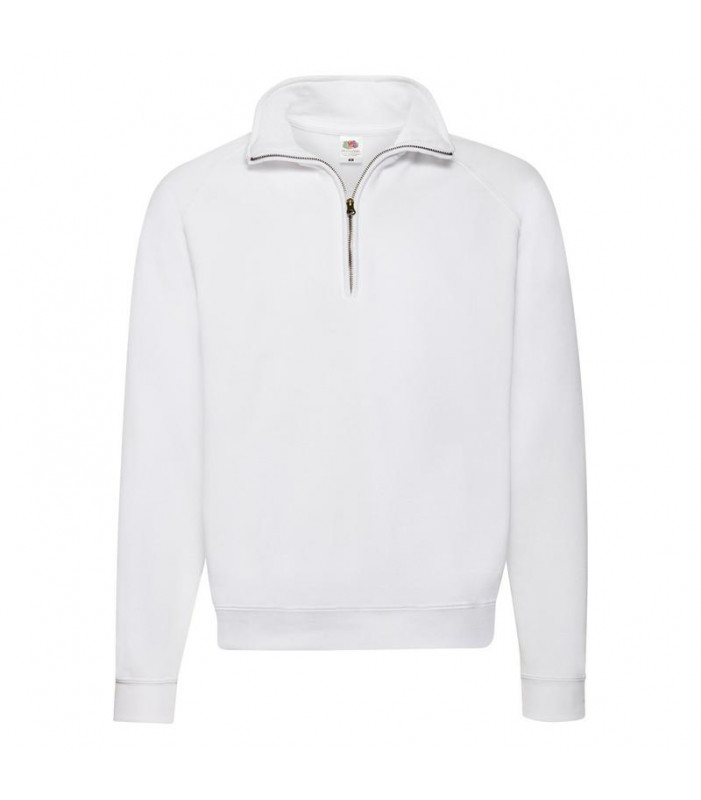 80% cotone, 20% poliestere, maniche raglan, zip sottile e tiralampo, felpata internamente.