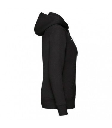 70% cotone 30% poliestere, polsini e girovita nel medesimo tessuto del corpo, due taschini a marsupio davanti, cappuccio con cordoncino dello stesso colore. interno felpato.