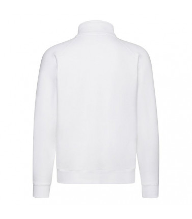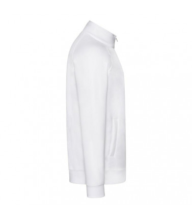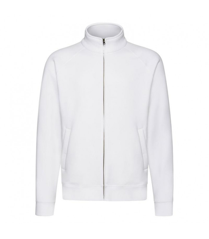 70% cotone, 30% poliestere, collo a lupetto, zip lunga e sottile, due tasche davanti, cerniera nascosta per favorire la stampa, felpata internamente.