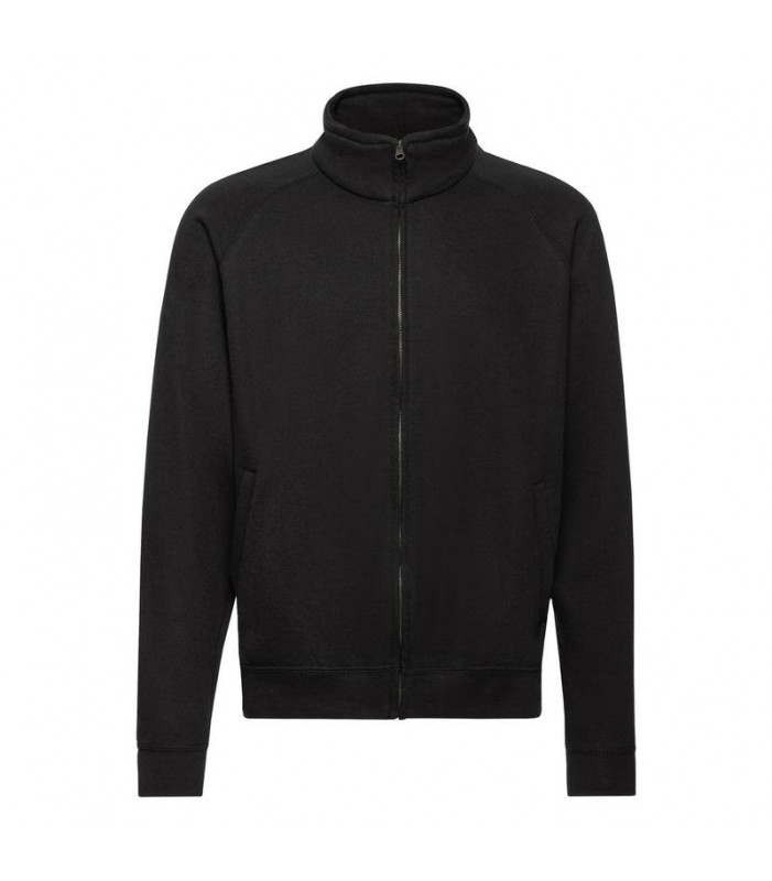 80% cotone, 20% poliestere, collo a lupetto, zip lunga e sottile, due tasche davanti, cerniera nascosta per favorire la stampa, felpata internamente.