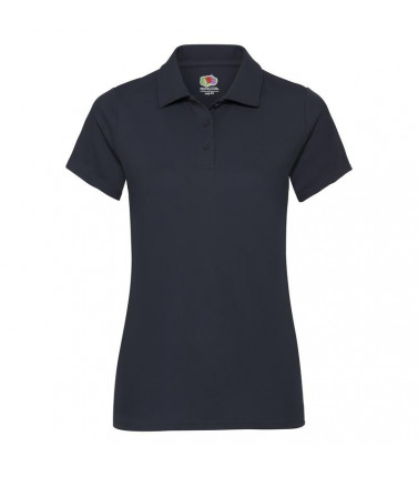 polo manica corta dritta 100% poliestere,3 bottoni tono su tono, cuciture laterali sagomate per un taglio piu' femminile. gr 140