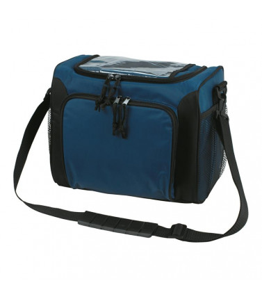 borsa frigo, grande scomparto principale, tasca frontale con cerniera a due direzioni, scomparti laterali in rete, scomparto per cartina sul lato superiore, tracolla staccabile, cinghie sul retro per fissaggio sul manubrio della bici. dim. bxhxp: 30x24x18. 100% nylon 420d. area di stampa: 13 x 15 cm.