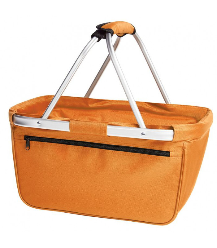 cestino per la spesa con telaio in alluminio e tasca frontale con cerniera, pieghevole. dim. bxhxp: 45x25/45x25. area di stamp a: 25 x 10 cm.