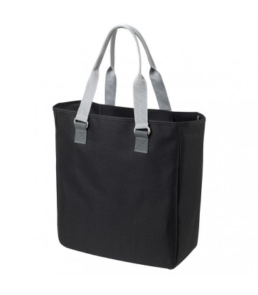 100% poliestere 600d. grande shopper con fibbie in metallo decorative e tracolla bicolore. scomparto principale con organizer sospeso con chiusura lampo. dimensioni: 40 x 43 x 16 cm, capacita': 36 litri, area stampabile: 32 x 28 cm.
