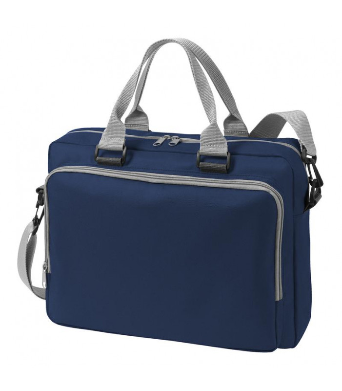 ampio scomparto principale con chiusura lampo e scomparto piatto, ampia tasca anteriore con chiusura lampo ed elementi organizer, tracolla regolabile in lunghezza e rimovibile, manici