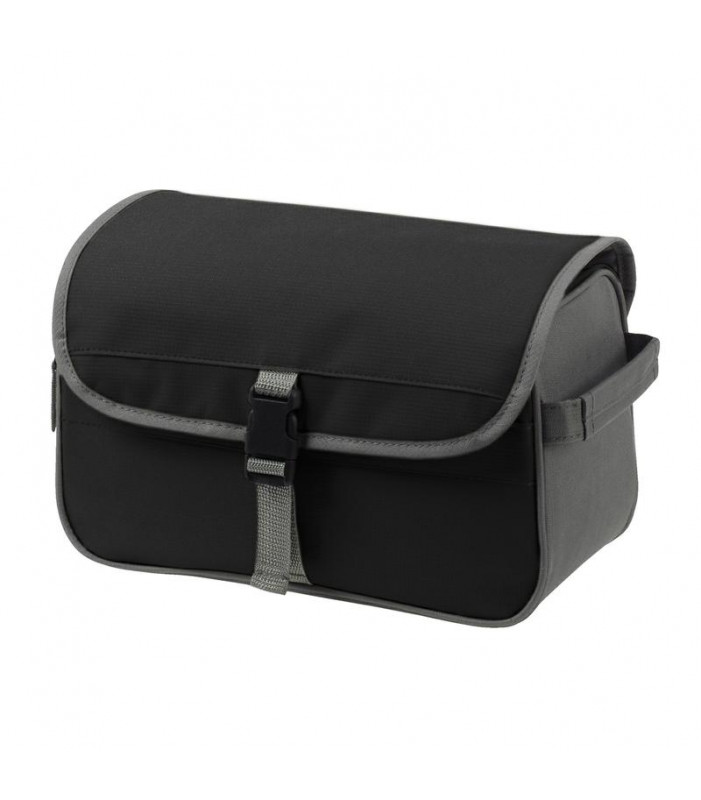 da appendere o appoggiare, scomparto principale imbottito, tre tasche con cerniera lampo, fibbia ad incastro, manico