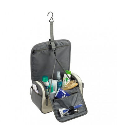 da appendere o appoggiare, scomparto principale imbottito, tre tasche con cerniera lampo, fibbia ad incastro, manico