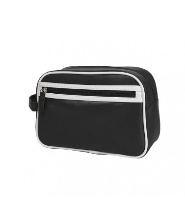 scomparto principale con chiusura lampo e due tasche, tasca anteriore con chiusura lampo, manico laterale