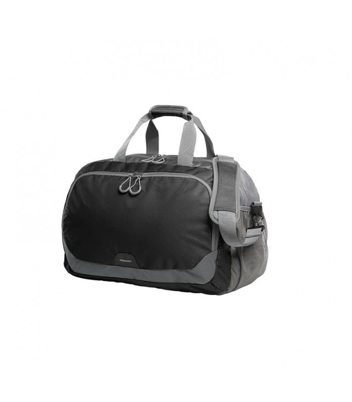 100% poliestere 420d e ripstop. borsone dotato di ampio scomparto principale e tasca anteriore a zip con elemento catarifrangente, scomparti laterali retinati, vano portascarpe, maniglie con presa imbottita, tracolla regolabile. capacita': dimensioni: 48 x 33 x 22 cm, capacita': 32 litri, area di stampa: 32 x 13 cm,