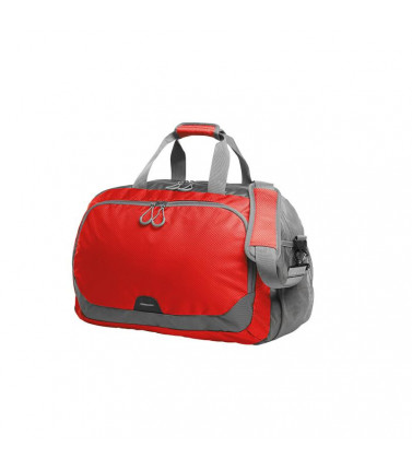 100% poliestere 420d e ripstop. borsone dotato di ampio scomparto principale e tasca anteriore a zip con elemento catarifrangente, scomparti laterali retinati, vano portascarpe, maniglie con presa imbottita, tracolla regolabile. capacita': dimensioni: 48 x 33 x 22 cm, capacita': 32 litri, area di stampa: 32 x 13 cm,