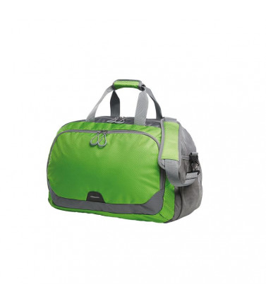 100% poliestere 420d e ripstop. borsone dotato di ampio scomparto principale e tasca anteriore a zip con elemento catarifrangente, scomparti laterali retinati, vano portascarpe, maniglie con presa imbottita, tracolla regolabile. capacita': dimensioni: 48 x 33 x 22 cm, capacita': 32 litri, area di stampa: 32 x 13 cm,