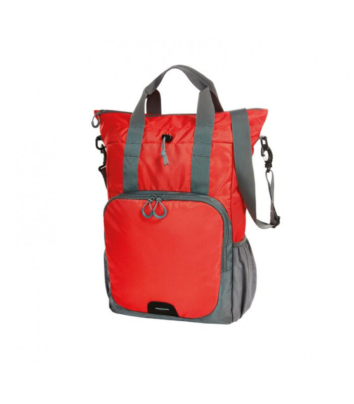 100% poliestere 420d & ripstop. shopper tracolla e zaino con compartimento principale con cerniera, compartimento interno, tasca frontale con cerniera doppia, tracolla rimovibile e regolabile. dimensioni: 29.5/42 x 48.5 x 15 cm, area di stampa: 16 x 16 cm. capacitã : 22 litri.