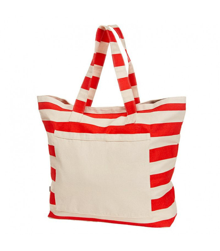 grande borsa in cotone pesante, con ampia tasca anteriore, chiusura con velcro, decorazione a strisce. dimensioni: 60x46x18 cm. area stampabile: 23x20 cm, capacitã : 36 litri.
