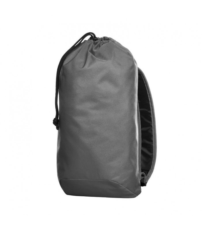 100% poliestere 600d. zaino a sacca richiudibile, scomparto principale con tasca con chiusura lampo laterale, chiusura con cordoncino, retro e spallacci imbottiti, manico. area di stampa sul fronte: 17 x 30 cm. dimensioni: 26 x 37/47 x 10 cm. capacitã : 9 litri.