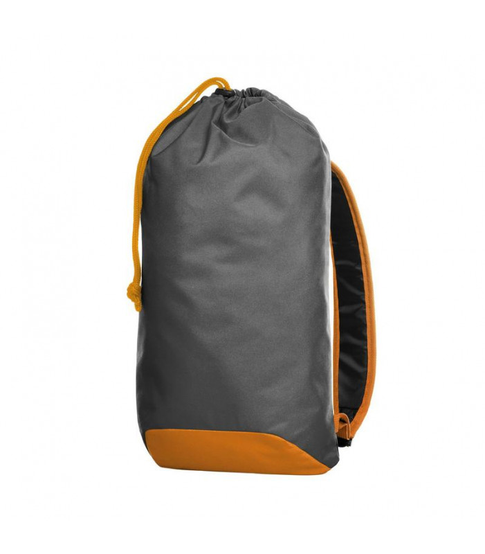 100% poliestere 600d. zaino a sacca richiudibile, scomparto principale con tasca con chiusura lampo laterale, chiusura con cordoncino, retro e spallacci imbottiti, manico. area di stampa sul fronte: 17 x 30 cm. dimensioni: 26 x 37/47 x 10 cm. capacitã : 9 litri.
