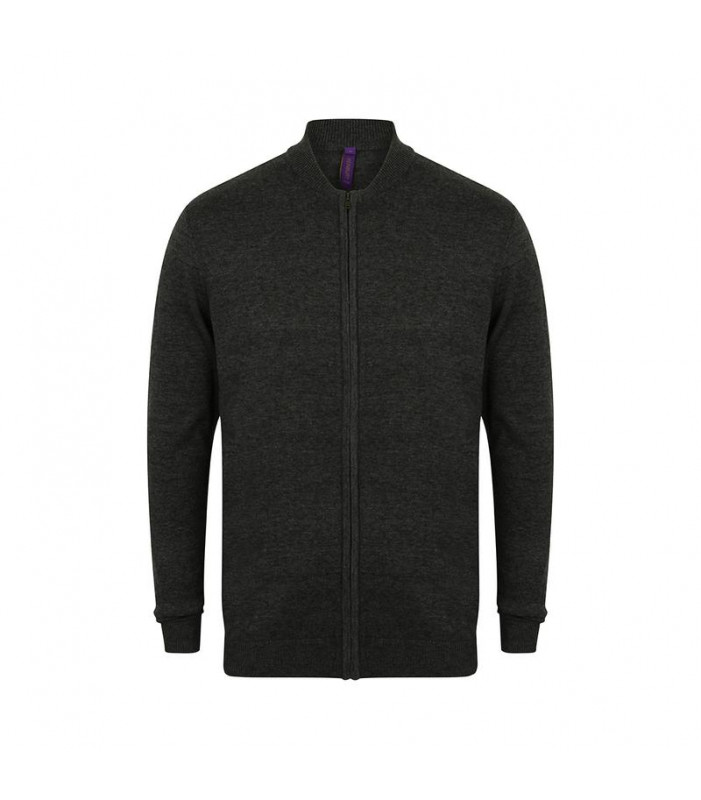 50% cotone 50% acrilico. bomber unisex a maglia fine con manica semi-modellata, apertura frontale con zip in metallo, tasche frontali.