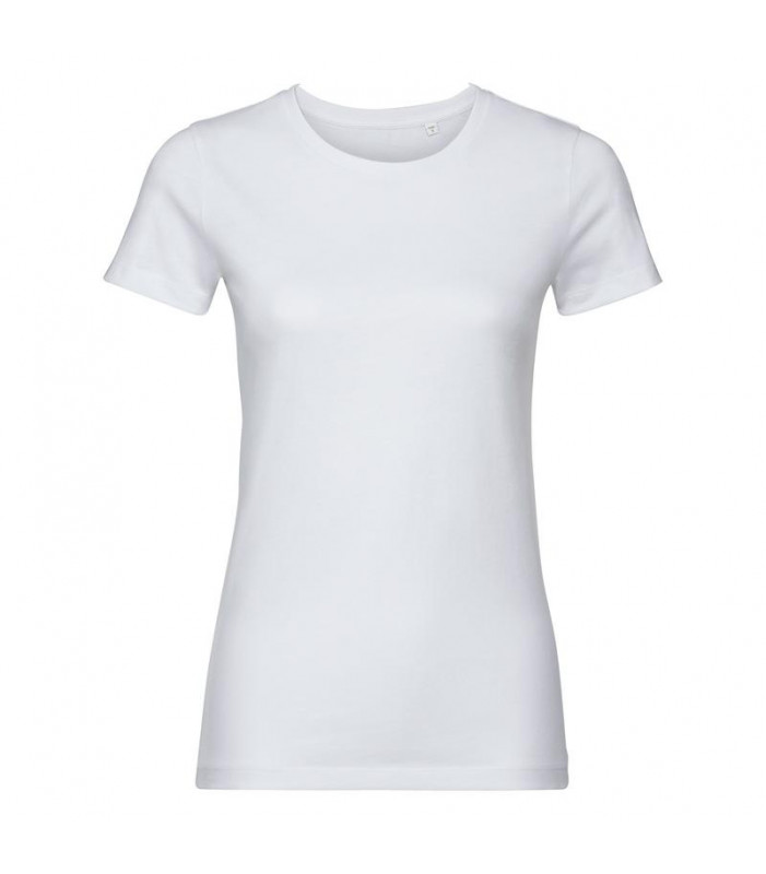 100% cotone ring-spun organico. t-shirt da donna con nastro spalla-spalla personalizzato, fascia del colletto in lycra, cuciture laterali, vestibilitã sagomata. (col. lx 97% cot. 3% vis.