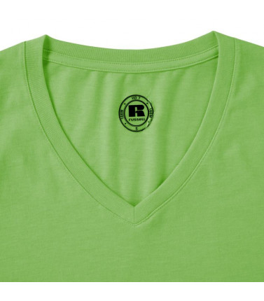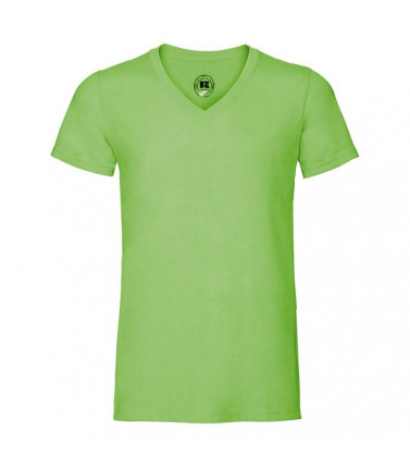 t-shirt manica corta scollo a v, 65% poliestere, 35% cotone pettinato ringspun, vestibilita' slim, fettuccia interna sulle spalle, cuciture laterali, etichetta adesiva rimovibile sul collo. bianco: 155 gr / colorato: 160 gr
